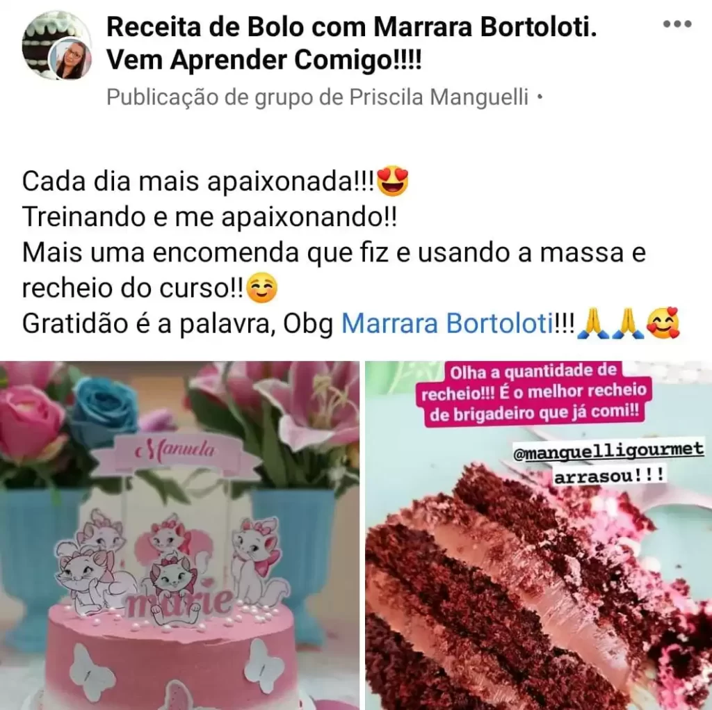 Portanto, para quem busca um curso de boleira completo e, ao mesmo tempo, um curso de confeitaria com foco em prática e vendas, nós acreditamos que o Manual da Boleira, da Marrara Bortoloti, faz todo sentido… Principalmente se você aplicar o método no dia a dia.